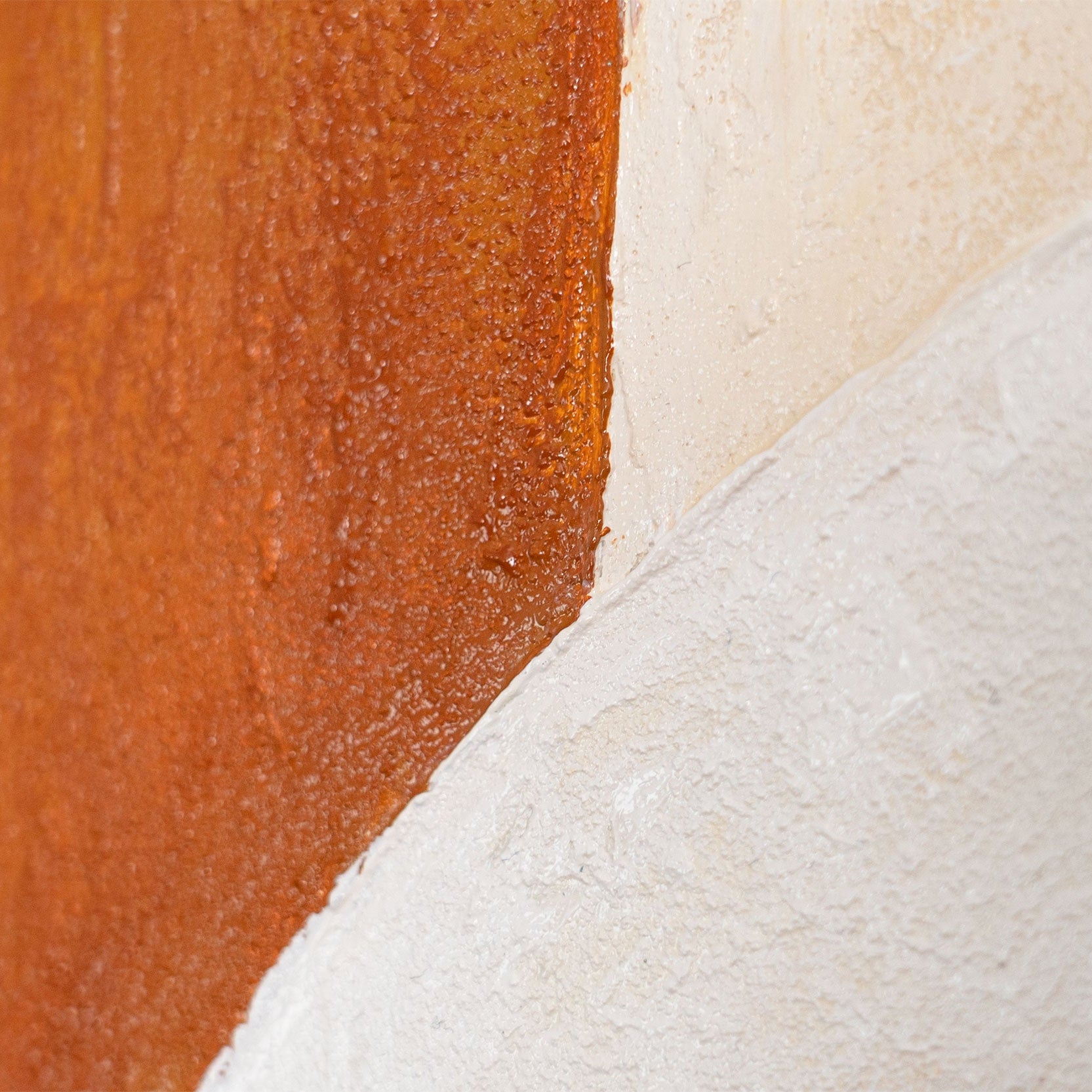 „Oddech architektury” to kompozycja, która oddaje spokój i wielkość form. Rytmiczne łuki, wykonane w odcieniach piaskowym, kremowym i terakotowym, tworzą wrażenie ruchu powietrza i światła. W obrazie połączono miękkość linii i siłę struktury — tak jak w prawdziwej architekturze, gdzie przestrzeń żyje w każdym zakręcie.