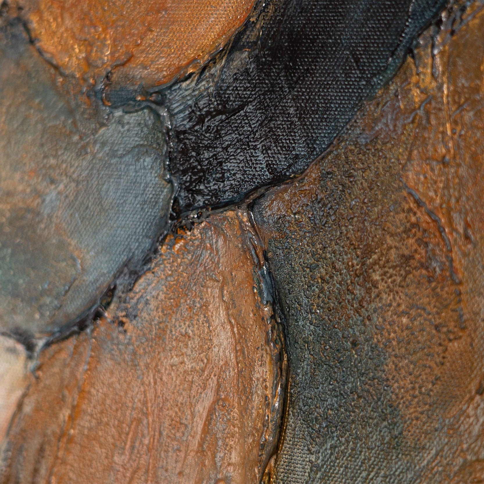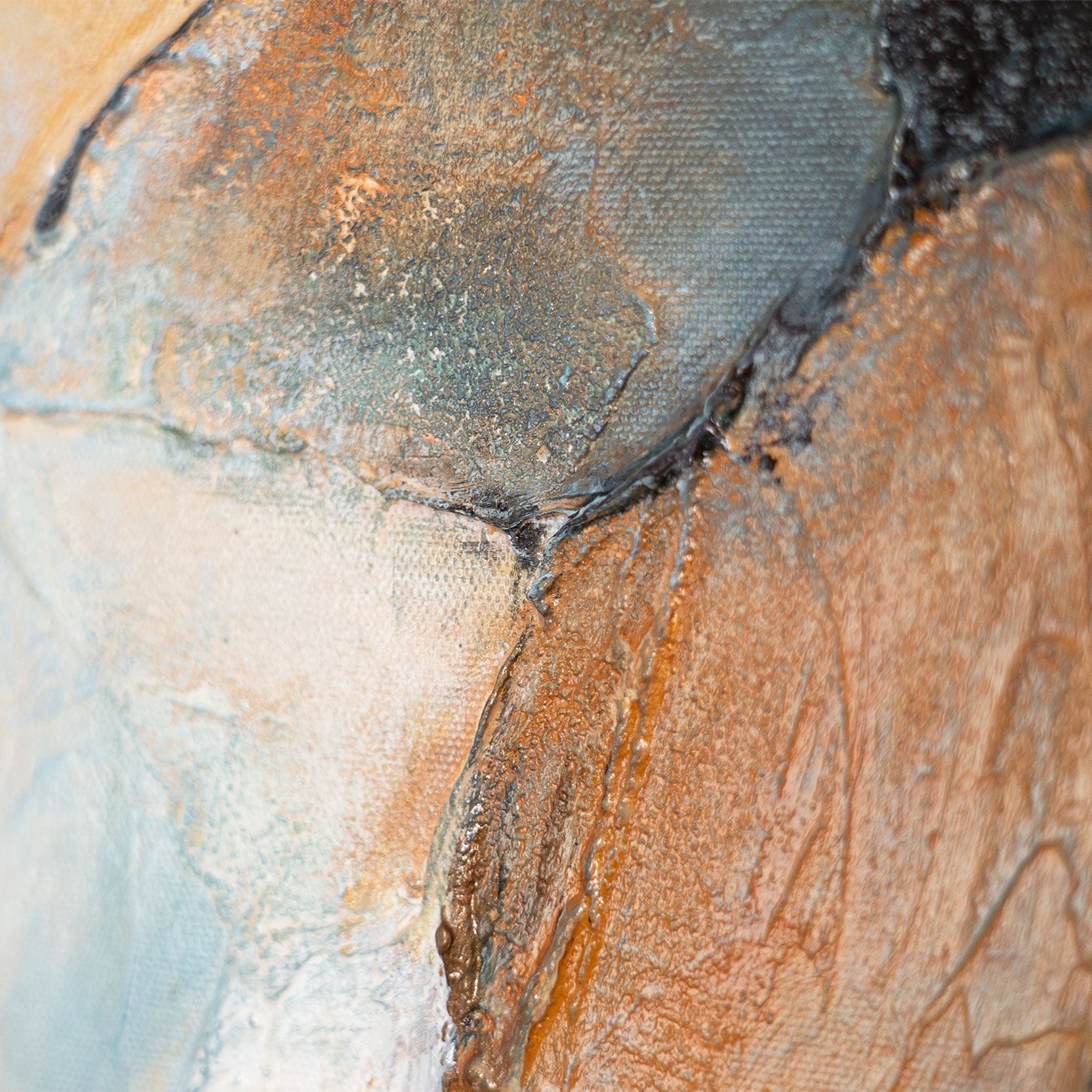 „Paleta wieczoru” oddaje moment, w którym światło dzienne ustępuje miejsca ciepłym odcieniom zachodu słońca. Delikatne przejścia odcieni ochry, szarości, błękitu i terakoty tworzą poczucie spokoju, jakby powietrze wypełniało wieczorne ciepło. Reliefowa powierzchnia dodaje obrazowi głębi i dynamiki, podkreślając grę światła na fakturze pociągnięć pędzla.