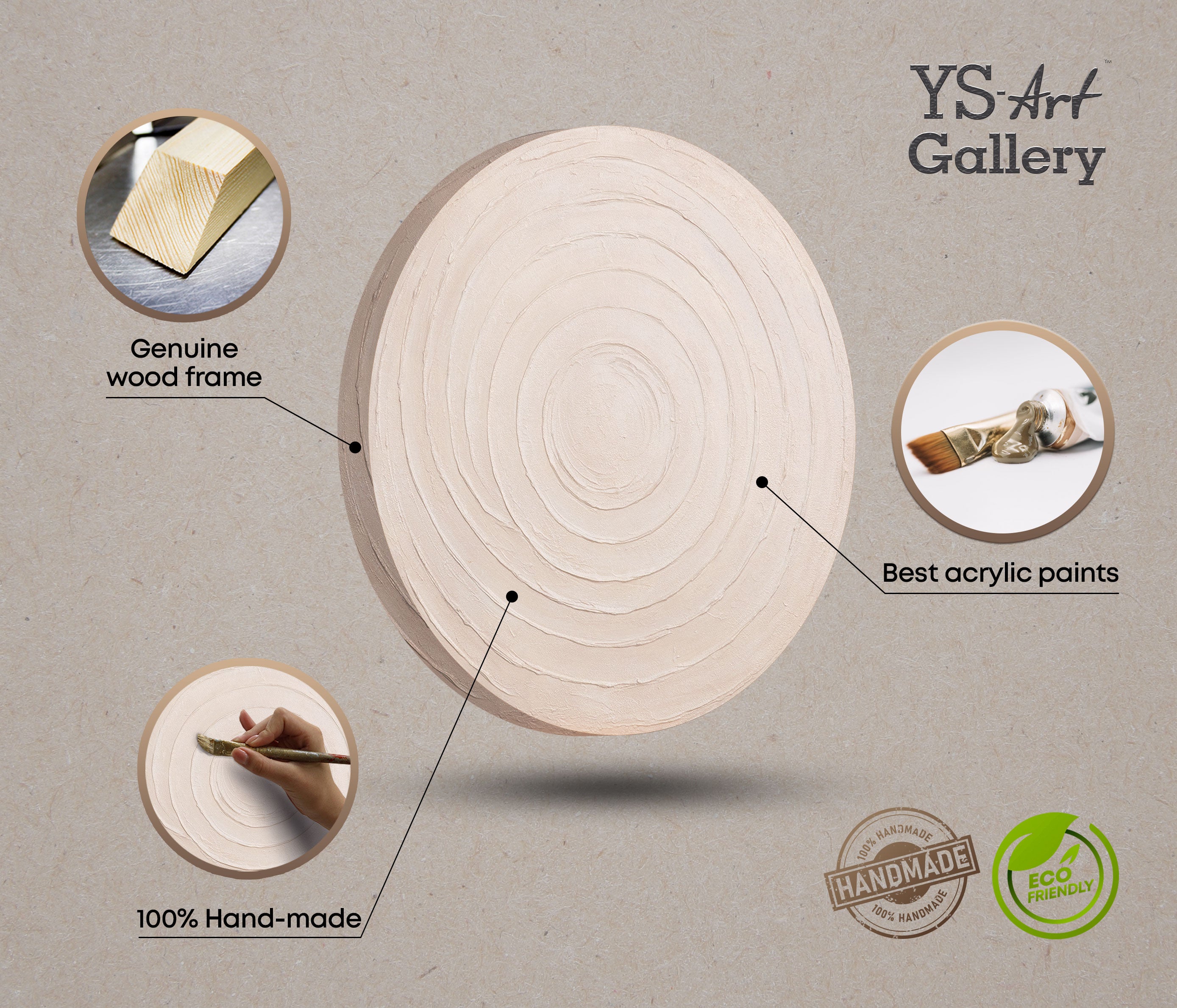 Obraz stanowi idealny akcent w nowoczesnych wnętrzach — od minimalizmu po styl skandynawski. Jego okrągły kształt dodaje miękkości przestrzeni, a neutralna paleta łatwo komponuje się z każdym kolorem ścian lub mebli.